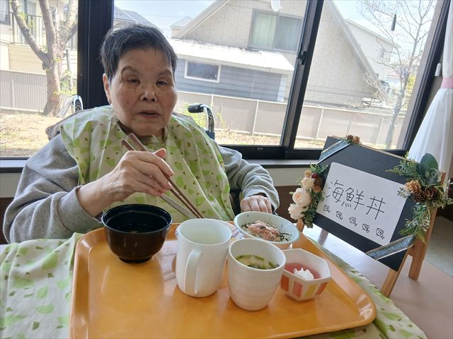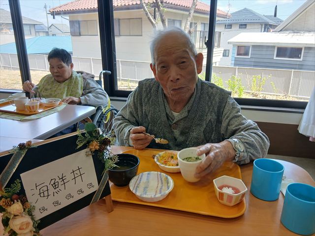 海鮮丼バイキングでは、6種類のミニ丼(ばらちらし、ねぎとろ丼、はらこ丼、しらす丼、かにちらし、納豆丼)の中から2種類ずつ選んで頂きました。